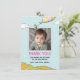 A heartfelt thank you for the places they went, and for a birthday party so wonderfully spent! This whimsical card captures the spirit of adventure with a charming design inspired by the classic Dr. Seuss book, "Oh, the Places You'll Go!" It's the perfect way to share gratitude for all the wonderful gifts and love received, as your little one embarks on their next great journey. With space to add a treasured photo, it's a sweet memento of a truly special day.