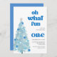 Oh what fun Blue tree christmas Boy birthday Invitation