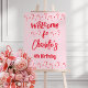 Oh What fun! Holiday birthday Welcome sign in red and pink with candy cane accents. Customize with the birthday girl's name and age.
