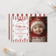 A festive red and white “Oh What Fun” first birthday photo invitation featuring striped borders, elegant script lettering, and delicate snowflake accents. The design includes space for a personalized baby photo, creating a warm and charming winter or holiday-themed birthday look. Ideal for girls’ first birthdays and seasonal celebrations, with fully customizable event details.