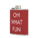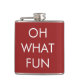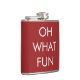 This cranberry red flask is decorated with the words "Oh What Fun", making it a fun and festive gift during the holiday season.