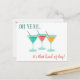 When one martini just won't do and you need more... this sassy postcard is for you. This whimsical design features three colorful martini glasses with text that read, "OH YEAH...it's that kind of day." The back of the postcard has a smaller version of the of the martini glass alongside of the return address. There are also ruled lines on the back to add an address.