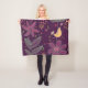 Pretty, artistic, whimsical, fun, and cheery best describes this flowers and yellow bird fleece blanket. The background is a deep purple with both big and small flowers of peach, pink, blue, and green with a yellow/peach bird singing away!