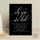 Mark the beginning of your forever with elegance using our contemporary aesthetic black white theme wedding elopement celebration invitation card, "Oh yes we did". Perfect for couples extending their joyous occasion, this invitation exudes sophistication with a hint of playfulness, setting the stage for a memorable event. Adorned with a timeless modern script design theme, it adds a touch of refined charm to your festivities. Crafted by TeeshaDerrick, this invitation promises to beautifully capture your love story.
