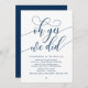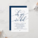 Mark the beginning of your forever with elegance using our contemporary classy navy blue theme wedding elopement celebration invitation card, "Oh yes we did". Perfect for couples extending their joyous occasion, this invitation exudes sophistication with a hint of playfulness, setting the stage for a memorable event. Adorned with a timeless modern script design theme, it adds a touch of refined charm to your festivities. Crafted by TeeshaDerrick, this invitation promises to beautifully capture your love story.