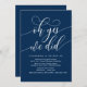 Mark the beginning of your forever with elegance using our contemporary classy navy blue theme wedding elopement celebration invitation card, "Oh yes we did". Perfect for couples extending their joyous occasion, this invitation exudes sophistication with a hint of playfulness, setting the stage for a memorable event. Adorned with a timeless modern script design theme, it adds a touch of refined charm to your festivities. Crafted by TeeshaDerrick, this invitation promises to beautifully capture your love story.