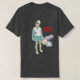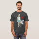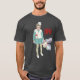My 11 yo wore adult XL (5’7” 165#). The 8yo is small framed. She wore adult small and tied it in the back. Grandma wore adult large with long sleeve shirt underneath. Tall girl adult medium. Dark haired male adult large. Good quality dark Heather gray, Gildan brand shirt. -it was next up from basic choice and cost about $20 per shirt. Not too thick or thin. Washed and dried well, no major shrinkage. Not see-through. Can wear a bra under it fine. Screen print is just as shown and well done, front and back.