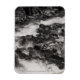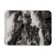 A black and white photograph of Ohanapechosh River, located in Mount Rainier National Park. The river is bordered by a rocky cliff and of scattered piles of stones. The rushing water creates an arch between the two stone borders. Image Copyright ©2023 Kimberly J Tilley. zazzle.com/store/developingnature