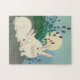 NewParkLane - Vintage Japanese Fine Art Puzzle, with a vintage, early 20th century (c. 1920 - 1930) Japanese colour woodcut by Ohara Koson, with two rabbits, with purple flowers in a landscape at full moon.