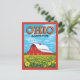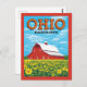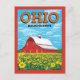 A vibrant and nostalgic illustration for the Buckeye State! This classic vintage travel poster captures the heart of Ohio's agricultural heritage with a bright red barn set against a field of sunny yellow sunflowers (or coneflowers). The bold colors, clear sky, and retro lettering evoke the golden age of American travel art. This artwork is a perfect piece of decor for a farmhouse, a gift for an Ohio resident, or a colorful state souvenir.