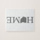 This Ohio home word art jigsaw puzzle features the word home in bold text and the letter O replaced with the outline shape of the Buckeye state of the Ohio.