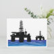 Oil rigs are impressive looking constructions and this design showcases a couple of large oil rigs out in the ocean. There is one oil rig in the foreground with the second one in the background. This oil rigs design looks great on these invitations