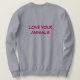 "Love your Animals" with a piggie on the front and the saying "Oint She Sweet" under the picture of little piggie. For those with an affectionate appreciation for piggies.