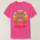 My 11 yo wore adult XL (5’7” 165#). The 8yo is small framed. She wore adult small and tied it in the back. Grandma wore adult large with long sleeve shirt underneath. Tall girl adult medium. Dark haired male adult large. Good quality dark Heather gray, Gildan brand shirt. -it was next up from basic choice and cost about $20 per shirt. Not too thick or thin. Washed and dried well, no major shrinkage. Not see-through. Can wear a bra under it fine. Screen print is just as shown and well done, front and back.