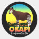 Cool animated okapi t-shirts and gifts! A cartoon okapi drawing stands in front of a forest scene, with "Rainforest Giraffes" written underneath. Very unique products for zoologists and animal lovers. Original art by Susan Stoneman, All Rights Reserved.