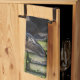A photograph of an okapi at the zoo printed on a kitchen towel.