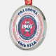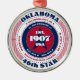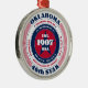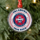 Show your state pride this holiday season with this unique Christmas ornament dedicated to Oklahoma, the 46th state. It has red, white, and blue patriotic colors with a circular typography design on a white background. The text includes facts about the state, such as its name, capital, state abbreviation, region, time zone, geographic coordinates, the year of its statehood, and its resident's name. It's a great gift for those who wish to celebrate their state or for those who are feeling nostalgic about their home state.