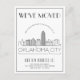 A unique modern deco-style moving announcement postcard for the beautiful city of Oklahoma City, Oklahoma. This card features a stylized illustration of the city's unique skyline with its name underneath. This is followed by your address information in a matching open-lined style. All individual elements of the card are unlocked so feel free to change or add any details necessary by using the customization function.