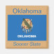An authentic fine quality image of the flag of Oklahoma set between the state name and nickname over a flag-color background.