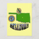 Oklahoma Map Outline, Seal, and Picture Text Postcard