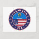 Badge of Oklahoma with flag of Oklahoma and flag of USA colors, rounded shape.