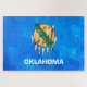 Artistic rendering of the Oklahoma state flag with grunge texture effects.
