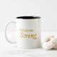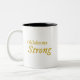 The "Oklahoma Strong” Two-Tone Coffee Mug epitomizes contemporary design trends while celebrating the resilience and spirit of Oklahoma. Crafted with a keen eye for modern aesthetics, this mug seamlessly blends minimalist elegance with impactful messaging.