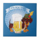 Oktoberfest with a mug of beer and a dog wearing a hat ceramic tile.