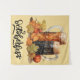Mugs of light and dark beer with autumn leaves, pumpkins and Oktoberfest text...tapestry