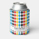 Oktoberfest Can Cooler personalized your custom text and gothic medieval style typography. Design features a diamond lozenge pattern in Bavarian and German flag colors of blue and white, black red and yellow. Ideal for personal use or business promotion.