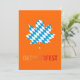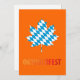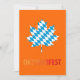Contemporary Oktoberfest party invitation. Maple leaf silhouette in Bavarian colors on orange background. Replace placeholder text with your invitation wording.