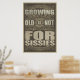 Growing old is not for sissies. A perfect typographic wall art for the Dr's Office! Kidding, all jokes aside, getting older makes you grow a thick skin, as it's plum stocked with aches and pains and creaks that were never there...