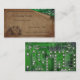 The look of old paper with a drawing of books in the corner. The upper corner appears to be pealing away revealing a computer chip. The computer chip covers the back of the card. This is a business card your customers won't forget.