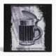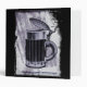 An illustration of an old fashioned beer stein with a hinged lid on top. The border is a black weathered looking design with a gray grunge background. A cool looking bar themed image.