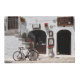 Placemat with an old bicycle and a white art store storefront in the city of Ostuni in Apulia, Italy.