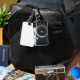 Old black camera luggage tag