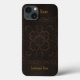 A case printed with the image of an old book cover made from brown tooled leather with ornamental patterns, and optional golden text.