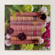 This design features a collection of vintage and antiquarian Victorian and Edwardian-era book spines in shades of light burgundy, apricot, sepia and terracotta with gold embellishments. Arranged with ferns and flowers. They include 'One Day and Another' 1909, 'English Essays' 1909, 'French Literature' 1907, 'Wood’s Natural History' 1880s, 'Travels With a Donkey' 1919, 'A Lady’s Life in the Rocky Mountains' 1910, and 'The Sunny Side' 1921. Sure to please everyone who loves books including: readers, writers, bibliophiles, bibliomaniacs, book collectors, booksellers, librarians, bookworms, and fans of the old library aesthetic.