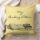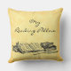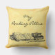 A custom pillow for readers with script letters and vintage art of books and a feather writing quill in black on a faux parchment background, for book lovers and librarians. Customize it to change fonts, background colors and more.