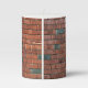 This design features a photo of an old brownish/reddish brick wall. Some of the depicted bricks appear to be worn or damaged, and some are covered in grime or dirt.