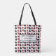 This humorous tote bag has a background of card symbols; red heart and diamond, black spade and clubs. On the foreground is a light grey rectangle with a narrow black border that says, "Old card players never die, they just shuffle away" You can change the text and the background color.