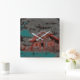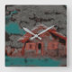 Old clay house with drizzled motion, under clouds square wall clock