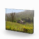 A scenic photograph of an old barn in the hills of North Carolina with the Blue Ridge mountains in the background. You may personalize this print with your name or message using the customization tool.