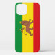 Historical flag of Ethiopia; red, golden and green horizontal stripes with Lion of Judah with a crown and spear in the center; used from 1897 to 1974