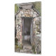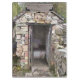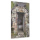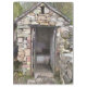 A watercolor design of an old cottage outdoor toilet or outhouse, used before the days of the luxury of indoor bathrooms.