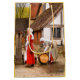 Two Tudor ladies washing water tubs at the water pump. England UK.