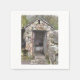 A watercolor design of an old cottage outdoor toilet or outhouse, used before the days of the luxury of indoor bathrooms.