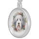 Old English Sheepdog Christmas Wreath Festive Pup Silver Plated Necklace