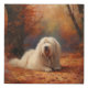 Old English Sheepdog in Autumn Leaves Fall Inspire Faux Canvas Print