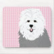 Whimsical Old English Sheepdog Mouse pad with pink polka dot background